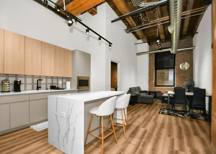 O apartamento River North Rooftop With In And Out Parking 3 Chicago de 111 m² se situa a uma distância aproximada de 25 minutos a pé do Cais Naval e a uma distância aproximada de 200 metros da estação de metro Grand.